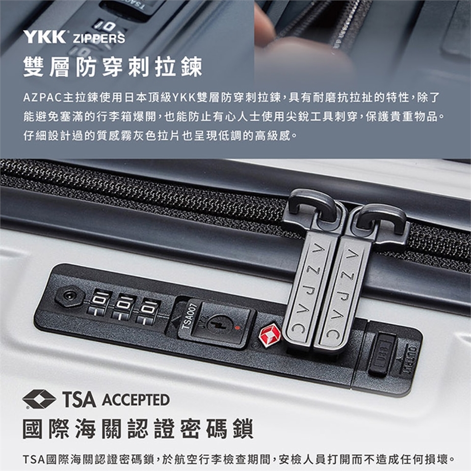 YKK防爆雙線圈拉鍊,TSA海關核准鎖
