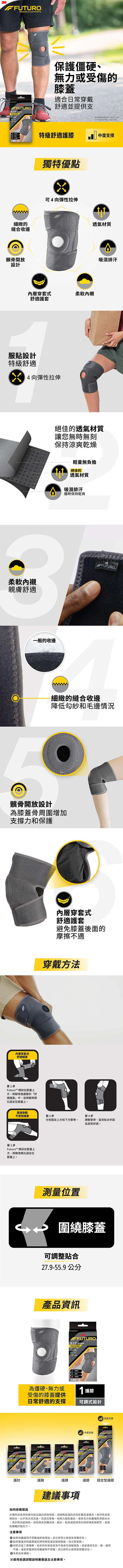 ◆適用時機:保護僵硬、無力或受傷的膝蓋,適合日常穿戴,舒適並提供支撐力。