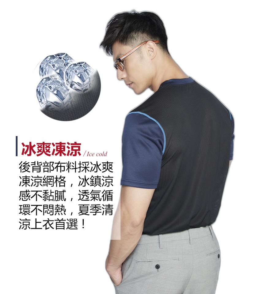 尺寸: 男款超輕彈涼感透心多樣拼接圓領短袖上衣 M~3XL