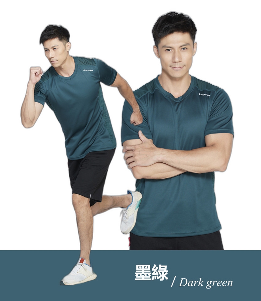 超輕彈涼感透心多樣拼接圓領短袖上衣 男款為 黑灰/丈青/墨綠 色