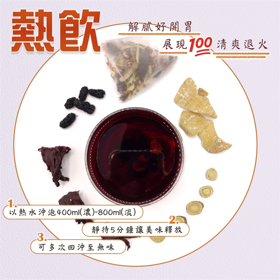 2.加入100°C以上,400ml(濃)-800ml(淡)熱開水沖泡。