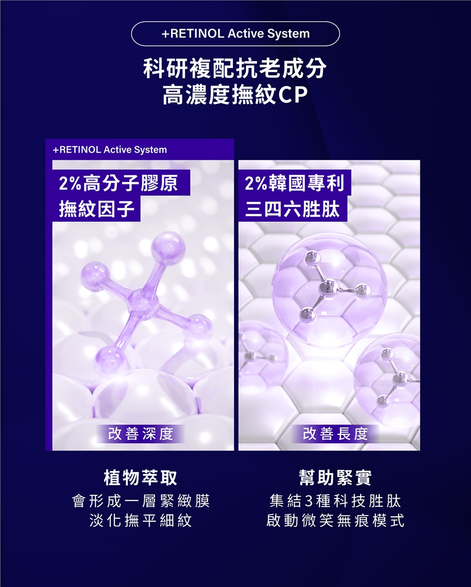 ※ 本產品添加較高濃度的A醇精華成分,建議於夜間使用。