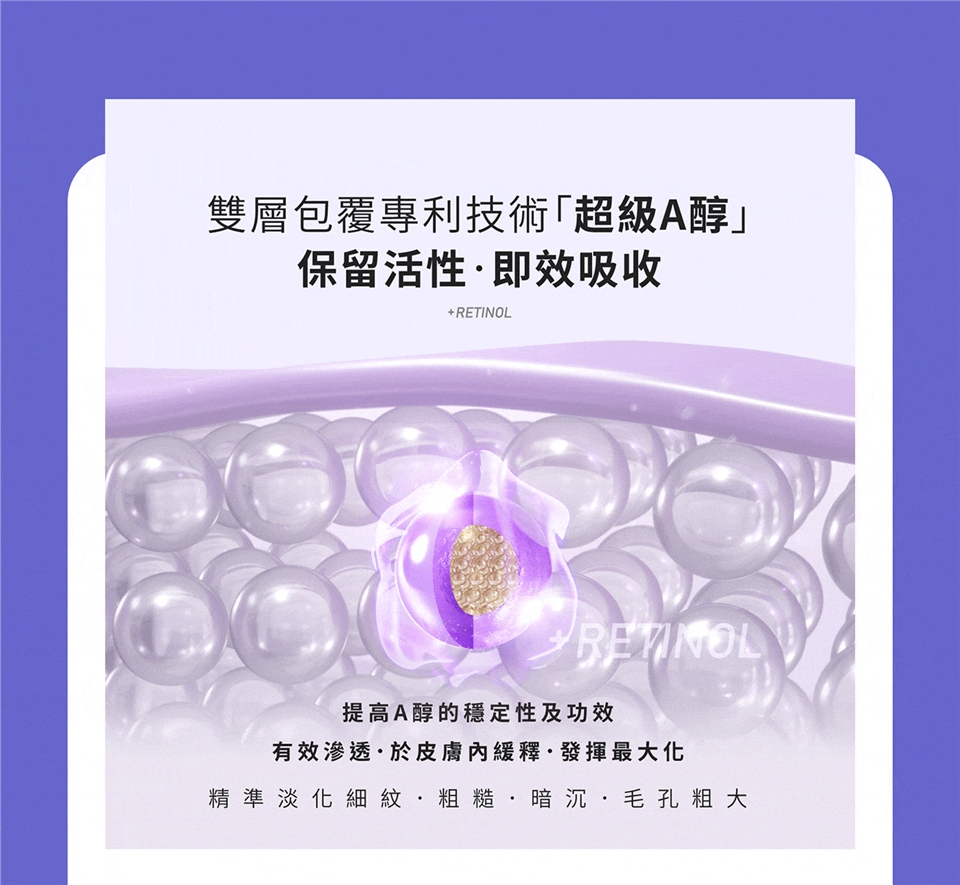 ※ 本產品添加較高濃度的A醇精華成分,建議於夜間使用。