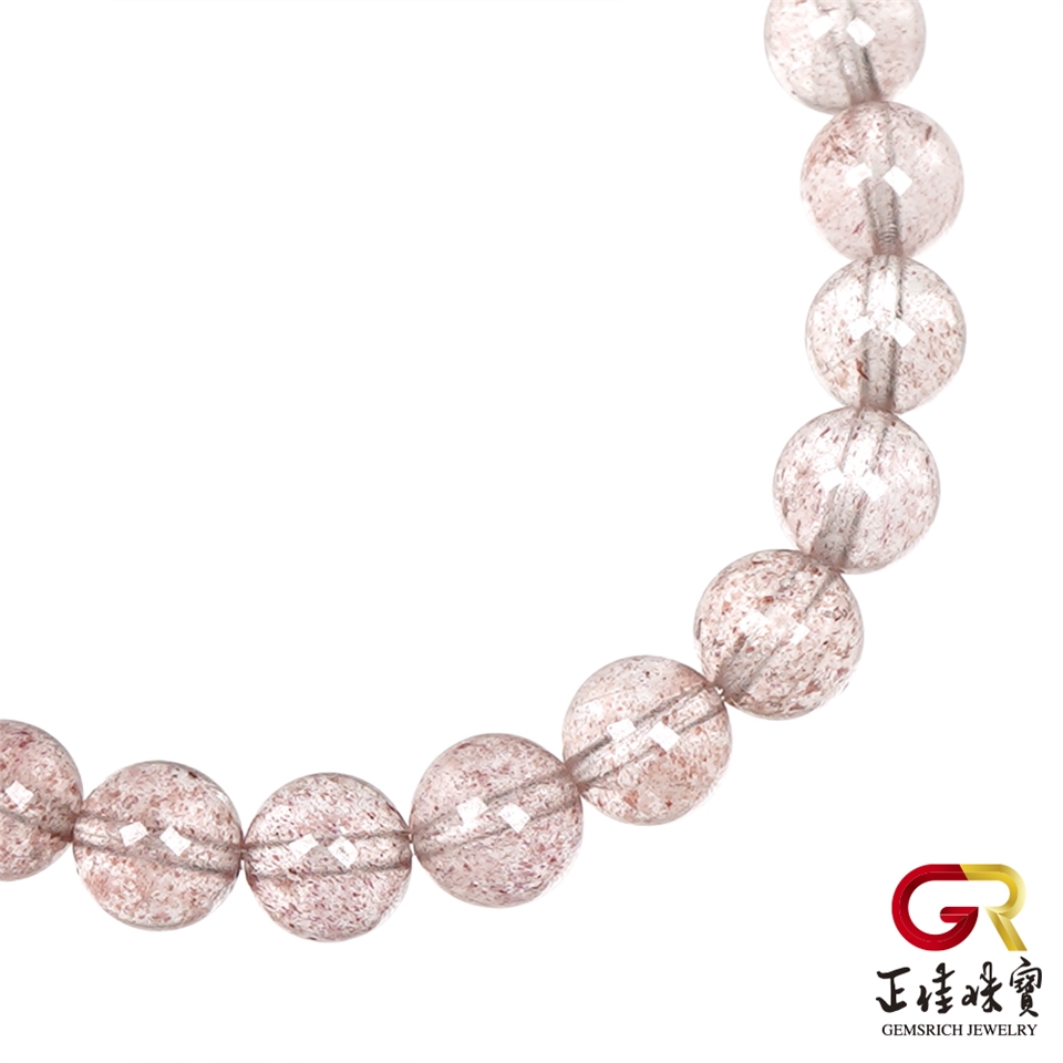 草莓晶 淨透漸變草莓籽 6.8-7.3mm 草莓晶手珠|日本彈力繩