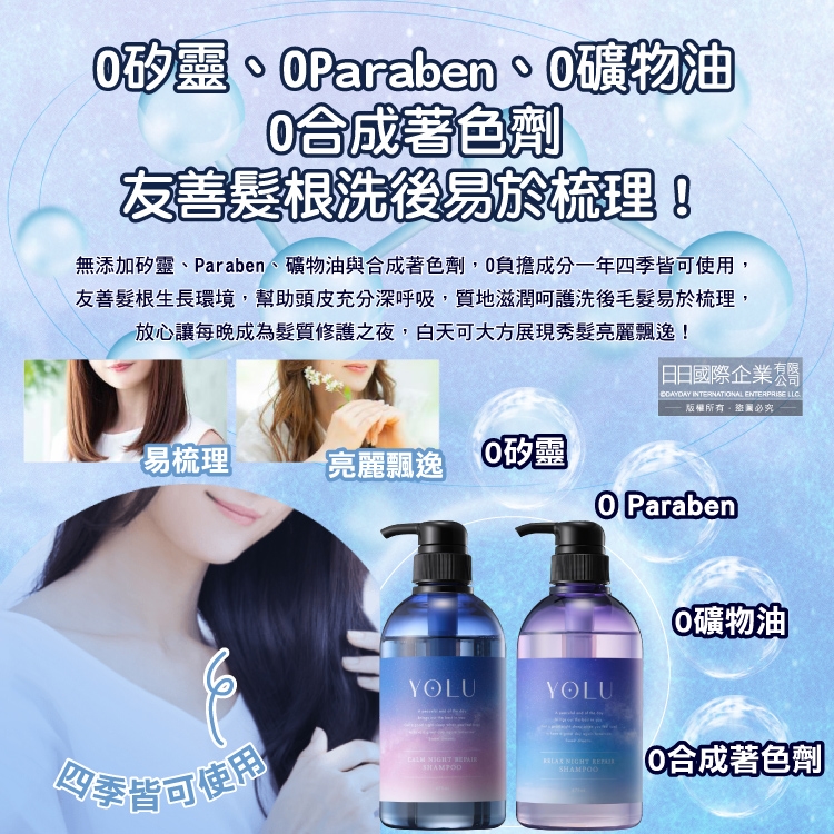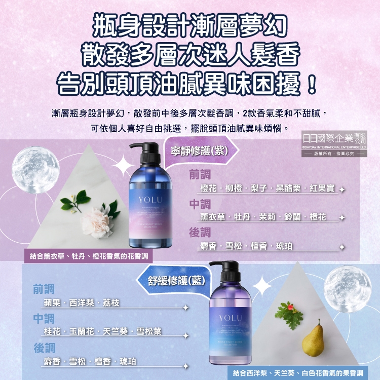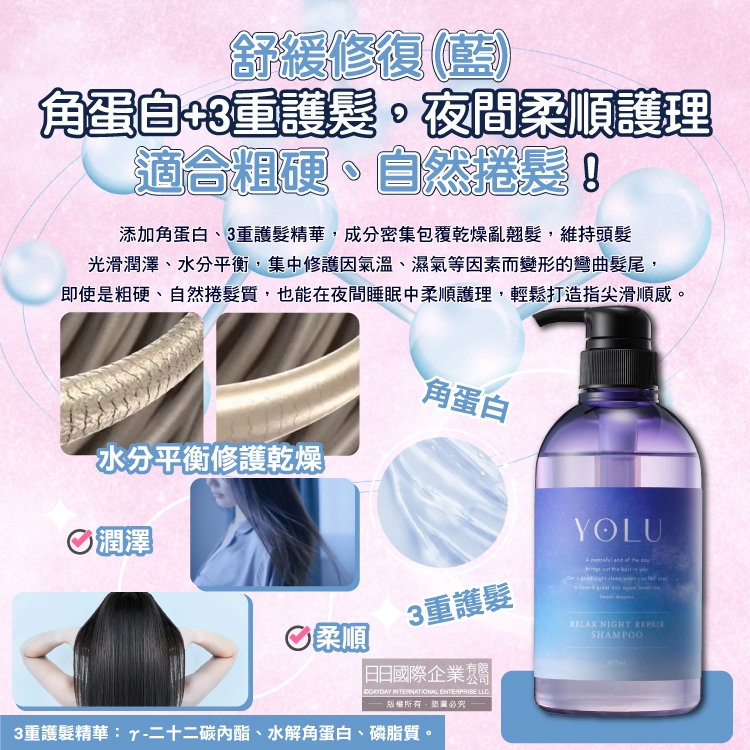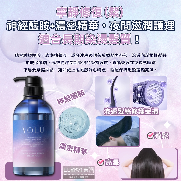 ●品名:夜間密集滋潤柔順多層次香氛精華修護洗髮精