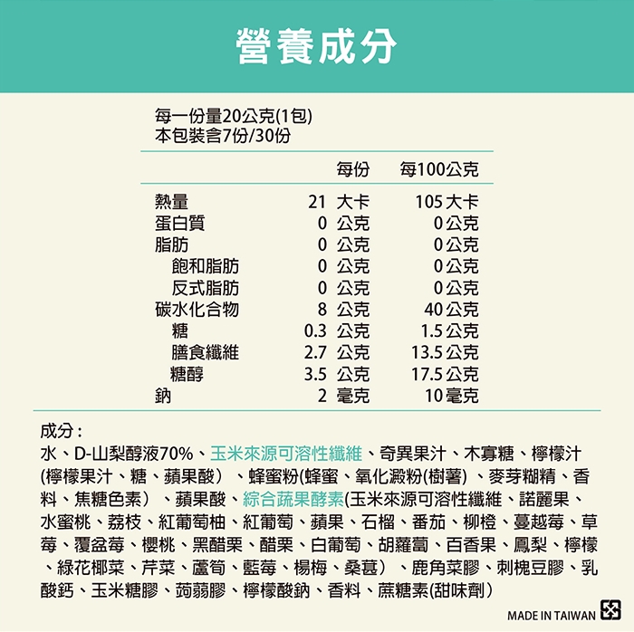 4. 本產品含果汁及植物萃取,若有顆粒或顏色變化係屬正常現象,請安心食用。
