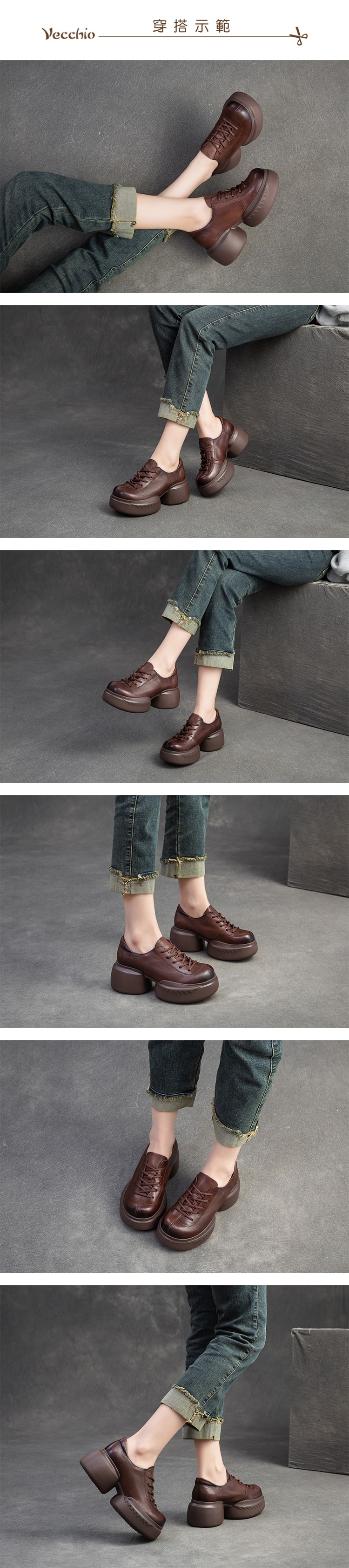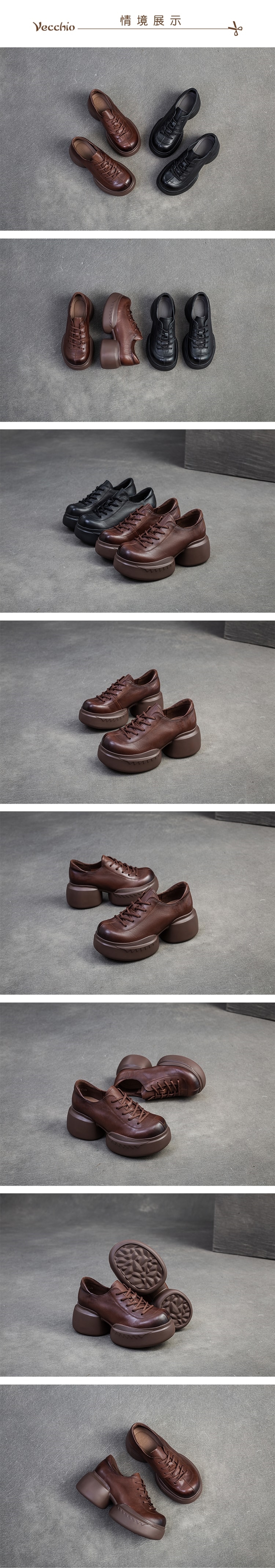 【VECCHIO】全真皮兩穿繫帶粗跟休閒鞋/全真皮頭層牛皮復古深口繫帶粗跟休閒鞋 女鞋 黑