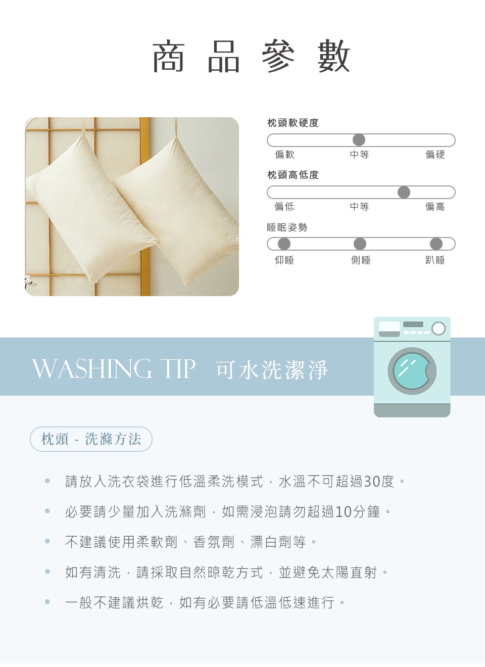 可整顆直接水洗、機洗,比起其他枕頭,更能維持清潔,使用的安心。