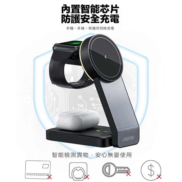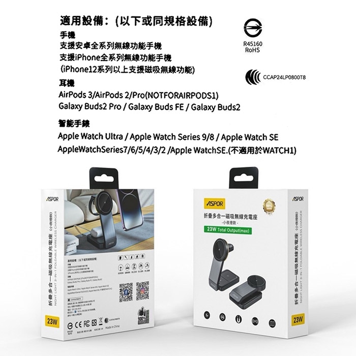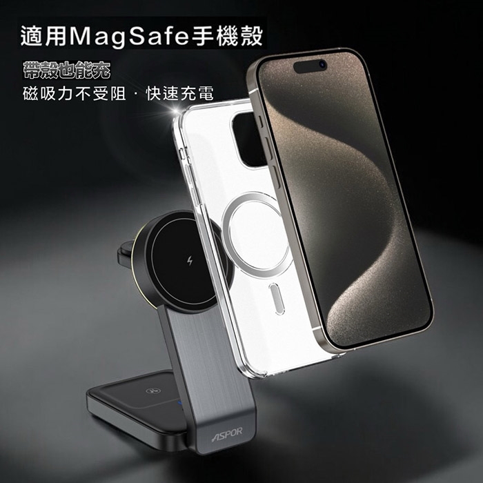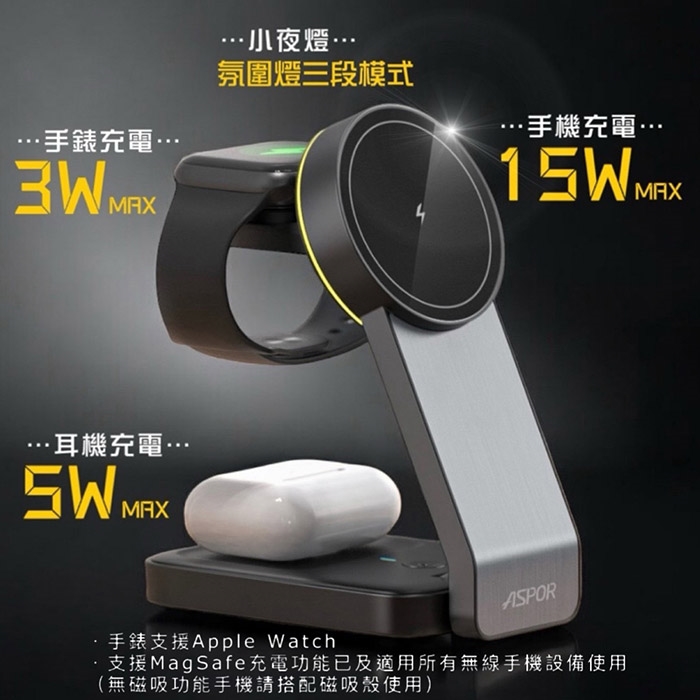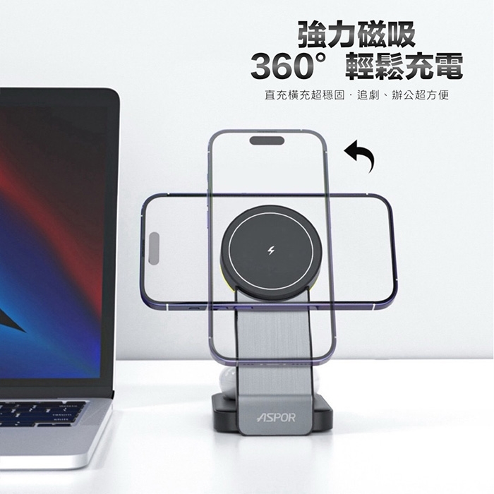 ASPOR 23W 折疊多合一磁吸無線充電座(手機/手錶/耳機)