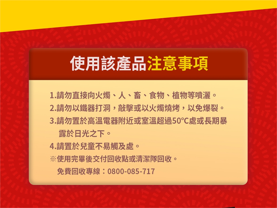 1. 請勿直接向火燭、人、畜、食物、植物等噴灑。