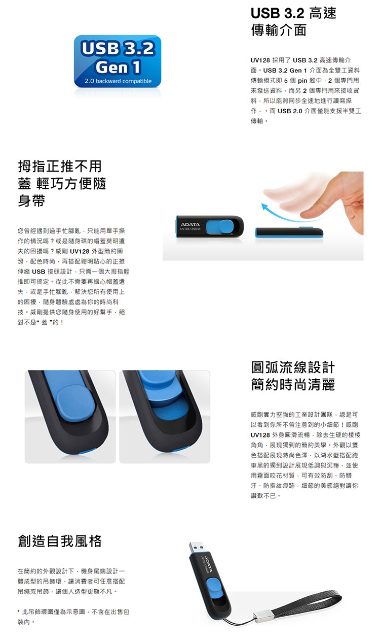 ◎ 型號 : ADATA UV128 USB3.2 Gen1 隨身碟