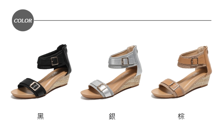 【MIXTY】織布皮帶釦坡跟涼鞋/歐美時尚織布皮帶釦飾一字帶繞踝坡跟涼鞋 女鞋 黑