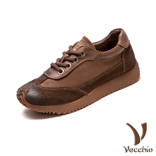 【VECCHIO】全真皮純色厚底休閒鞋/全真皮頭層牛皮純色復古厚底休閒鞋 女鞋 棕