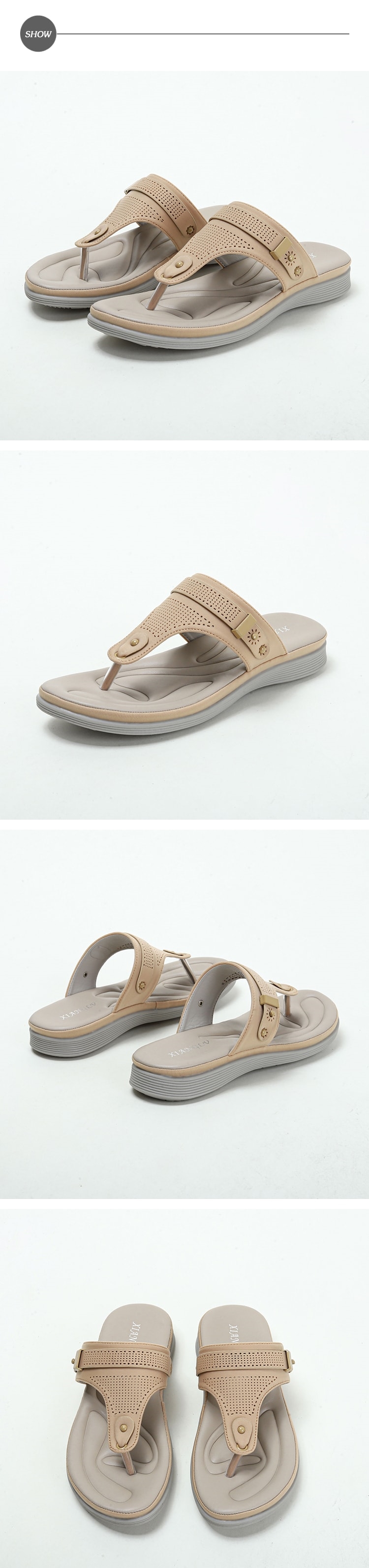 怎麼搭配都不會出錯/沖孔細節鞋面/休閒風人字拖