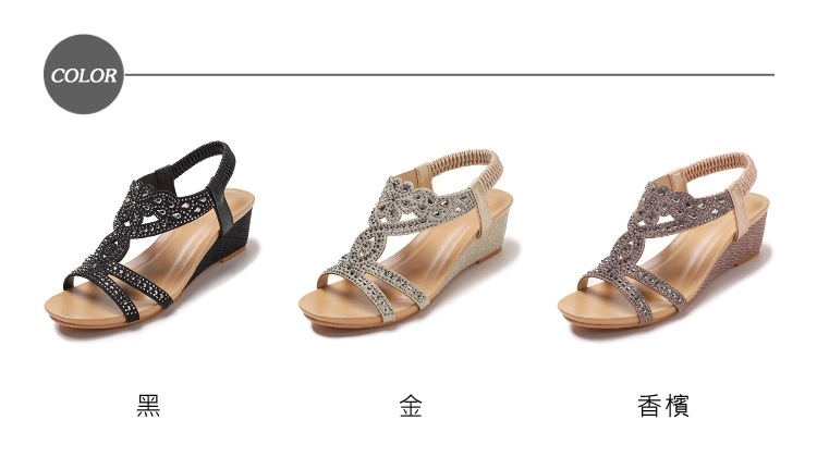 【ADORE】貼鑽縷空坡跟涼鞋/民族風華麗幾何貼鑽縷空線條坡跟涼鞋 女鞋 黑