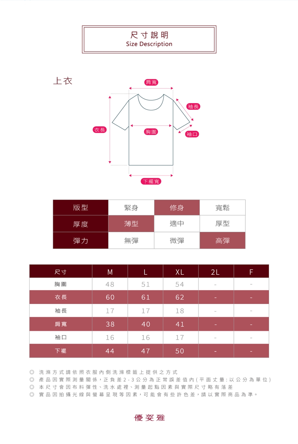※ 本尺寸會因布料彈性、洗水處裡、測量起點因素與實際尺寸略有落差