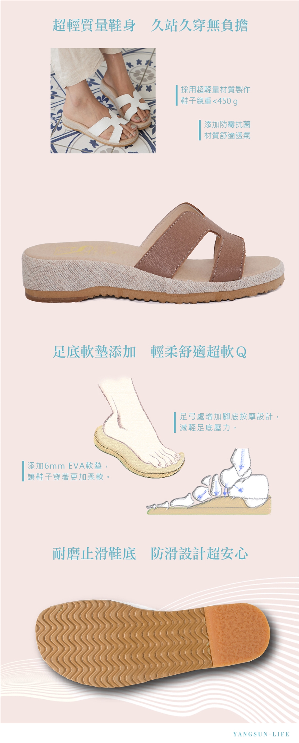 擁有近五十年製鞋工藝技術,洋森生活是在地鞋廠的自有品牌,堅持所販售商品全程台灣製造,歷經繁複工序且嚴守品質,才能成就一雙舒適且耐久站、久走的好鞋。