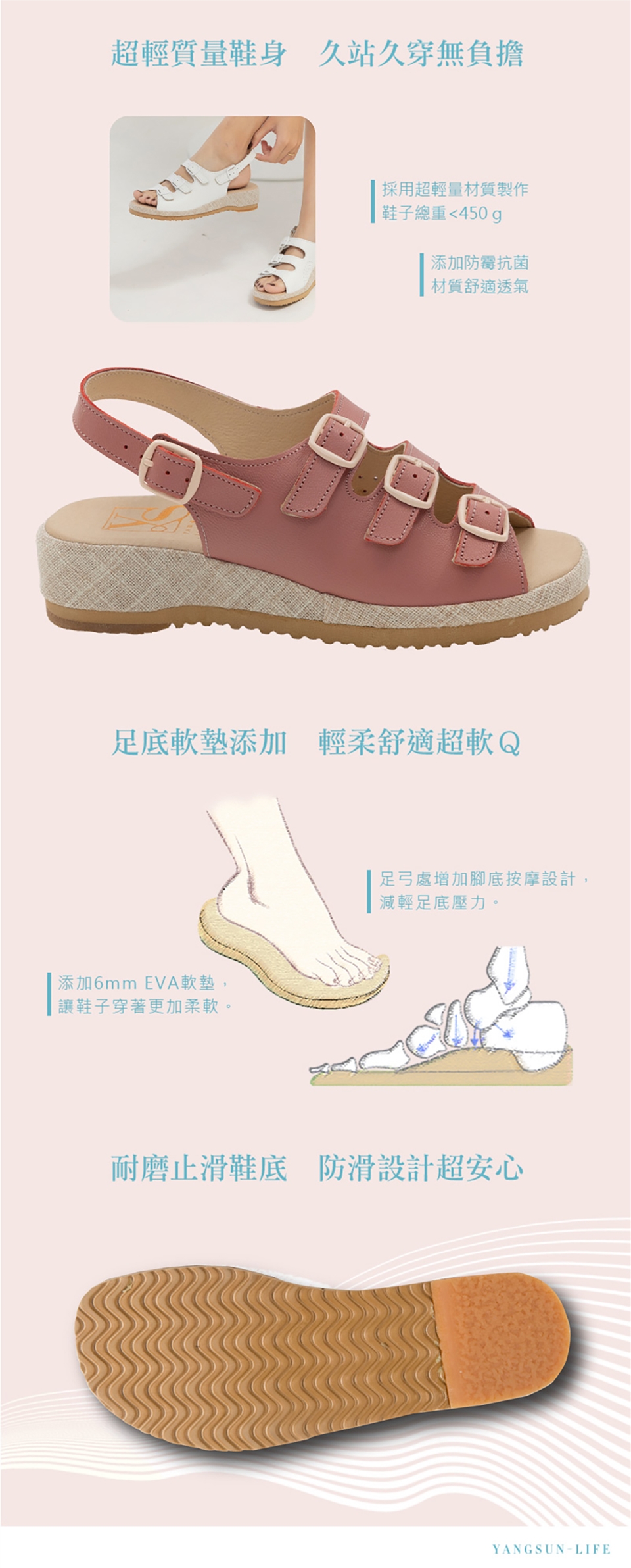 擁有近五十年製鞋工藝技術,洋森生活是在地鞋廠的自有品牌,堅持所販售商品全程台灣製造,歷經繁複工序且嚴守品質,才能成就一雙舒適且耐久站、久走的好鞋。