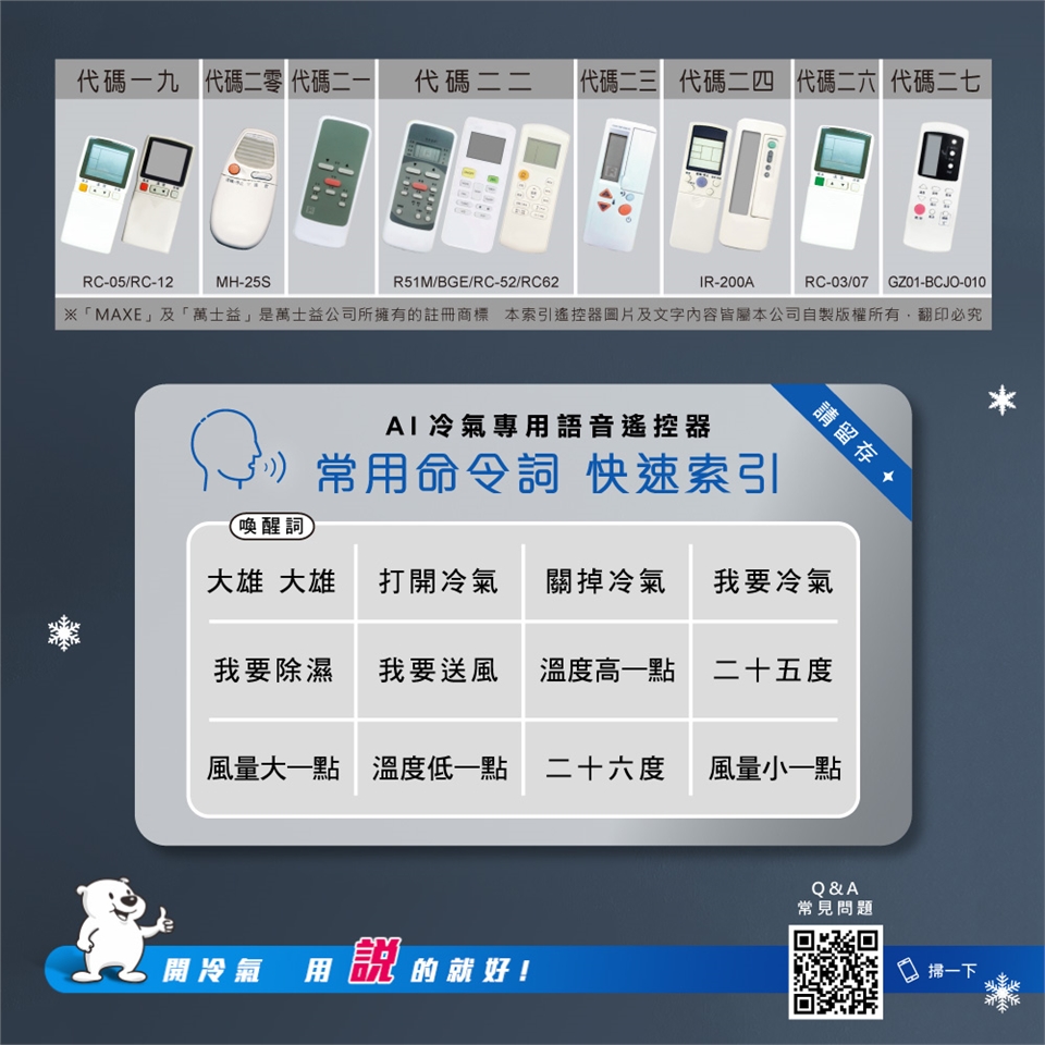 品名:萬士益 AI智能冷氣語音遙控器 NB-M90