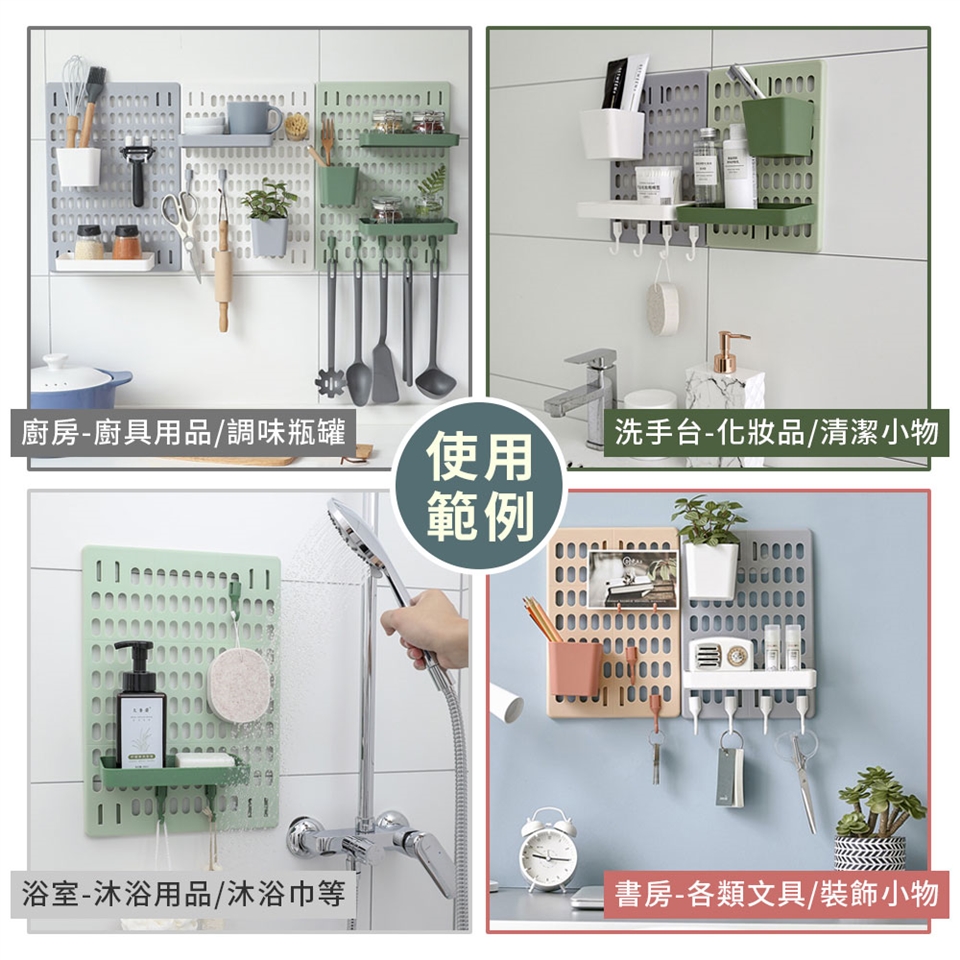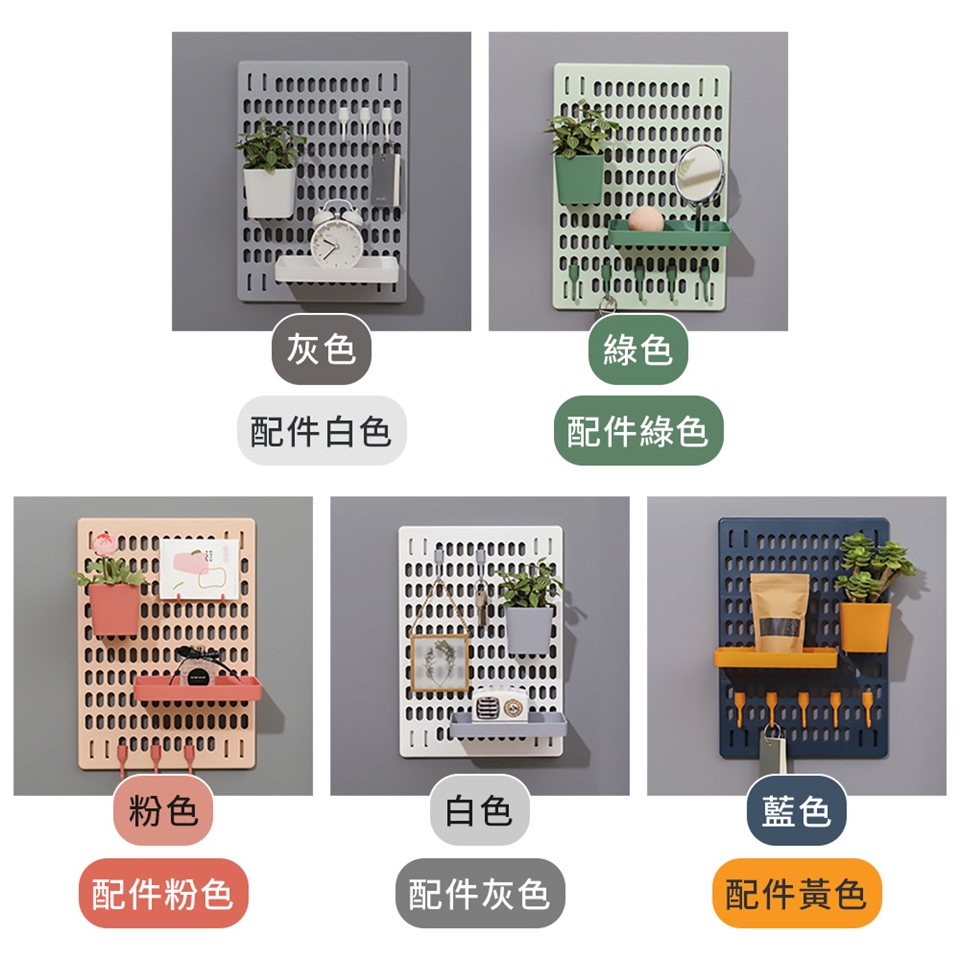 洞洞板和配件的顏色搭配:粉與綠為同色,灰白藍為不同色搭配,請詳見最後一張圖。