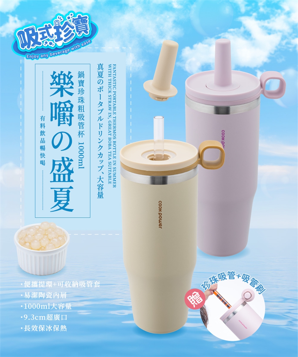 品名:真空提環內陶瓷珍珠粗吸管杯1000ml_2入