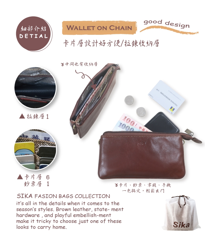 Sika雙層斜背包(小)A8317-02深咖啡