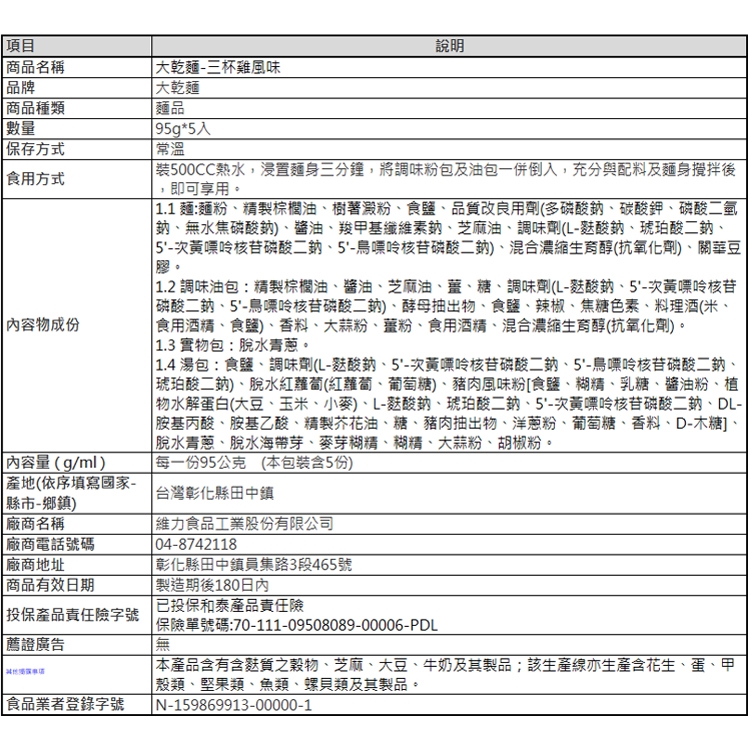[維力 大乾麵三杯雞風味]