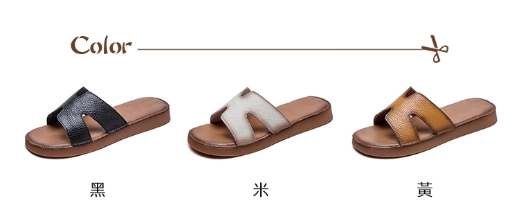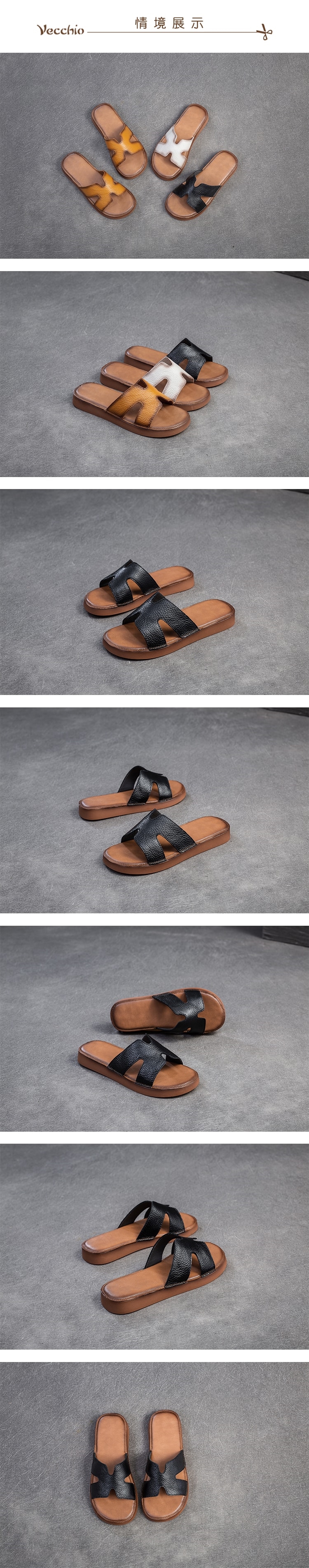 【VECCHIO】真皮經典H字造型平底拖鞋/真皮頭層牛皮百搭經典H字造型平底拖鞋 女鞋 黑