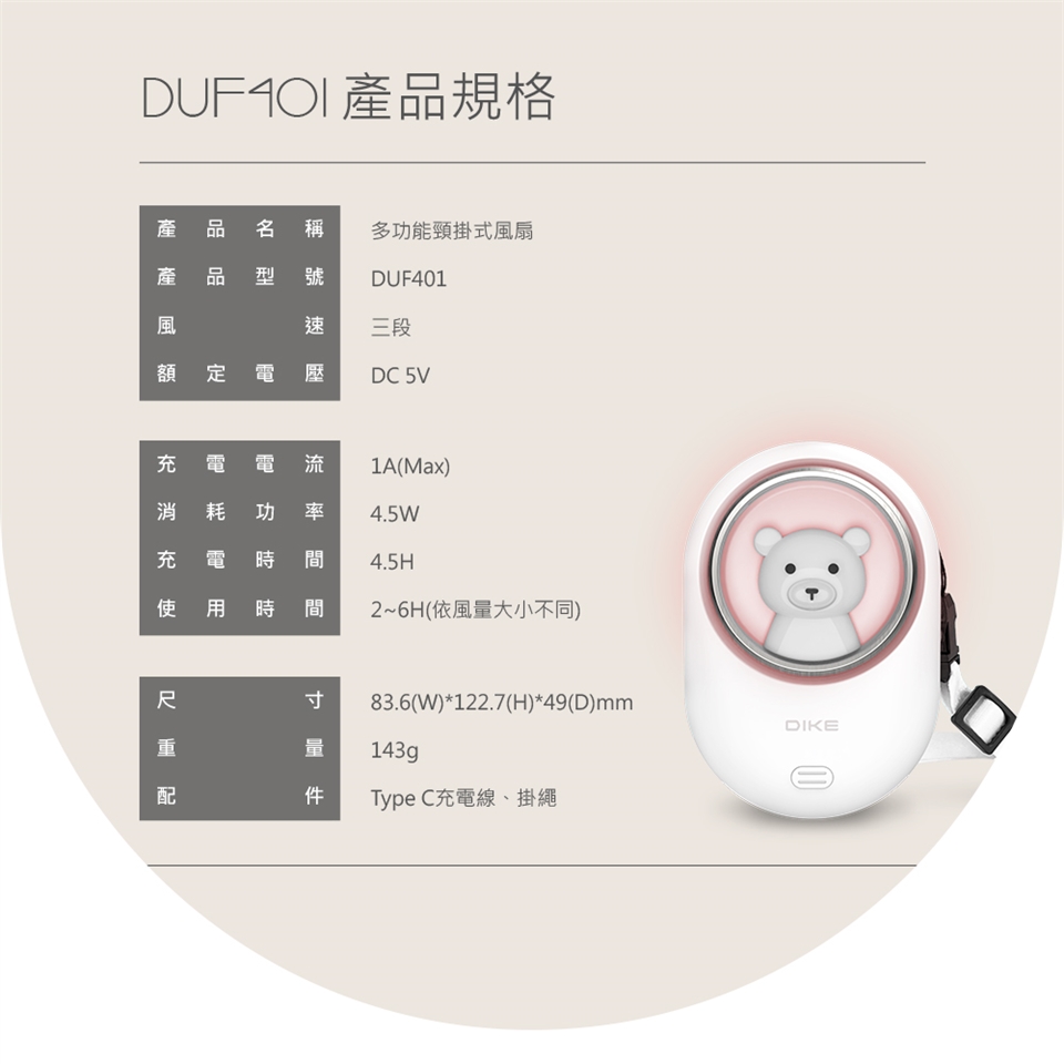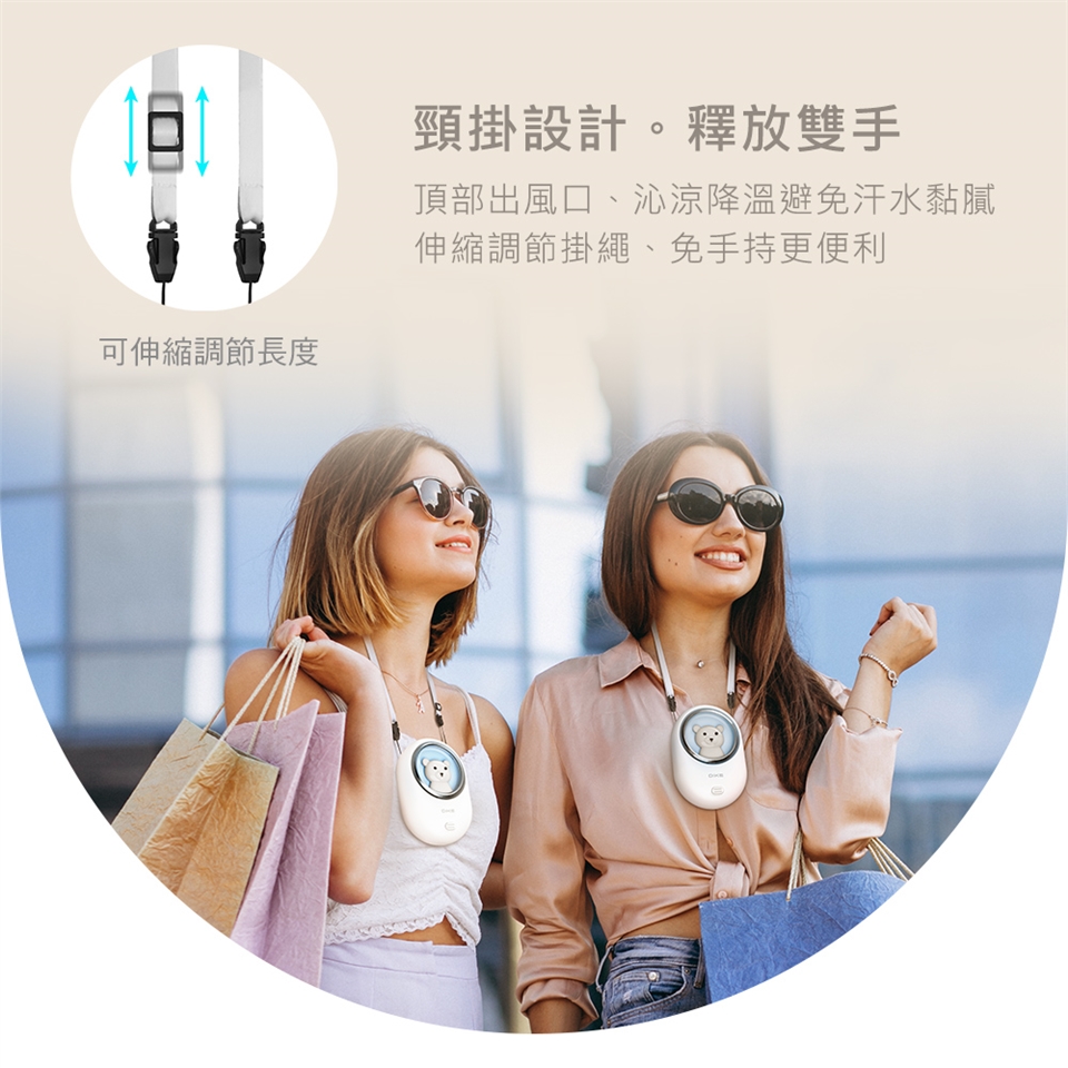 2 多元使用功能,舒適頸掛、立式桌扇、便利腰夾