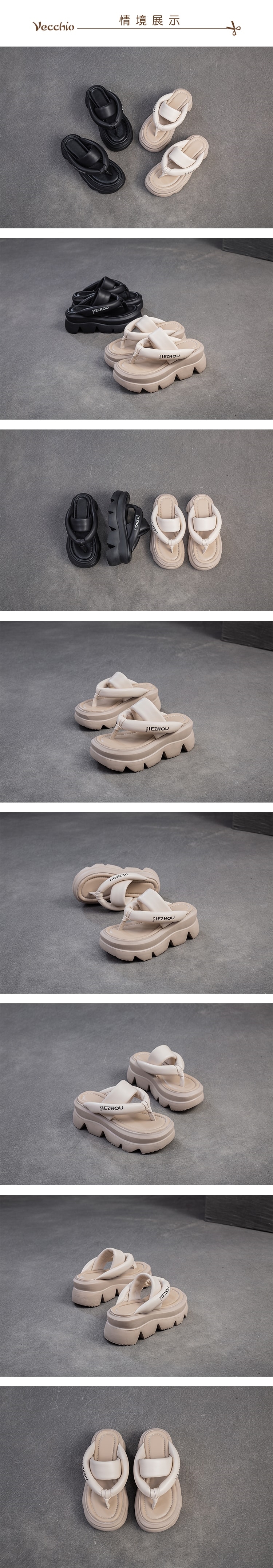 【VECCHIO】真皮羊皮人字夾腳厚底拖鞋/真皮羊皮經典胖胖人字夾腳一字帶鬆糕厚底拖鞋 女鞋 米