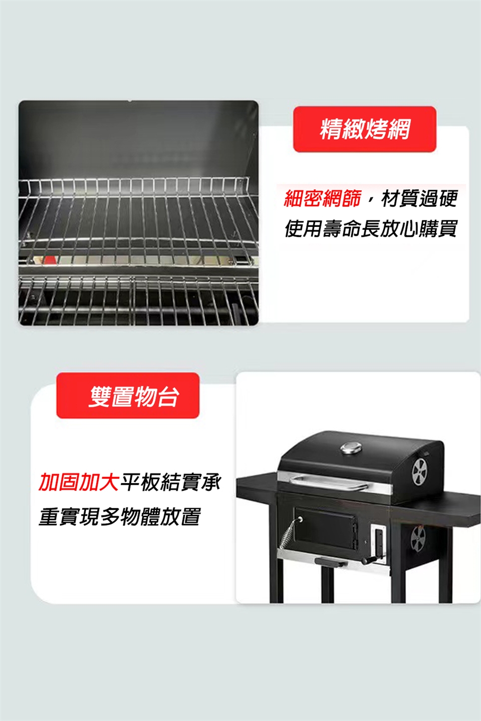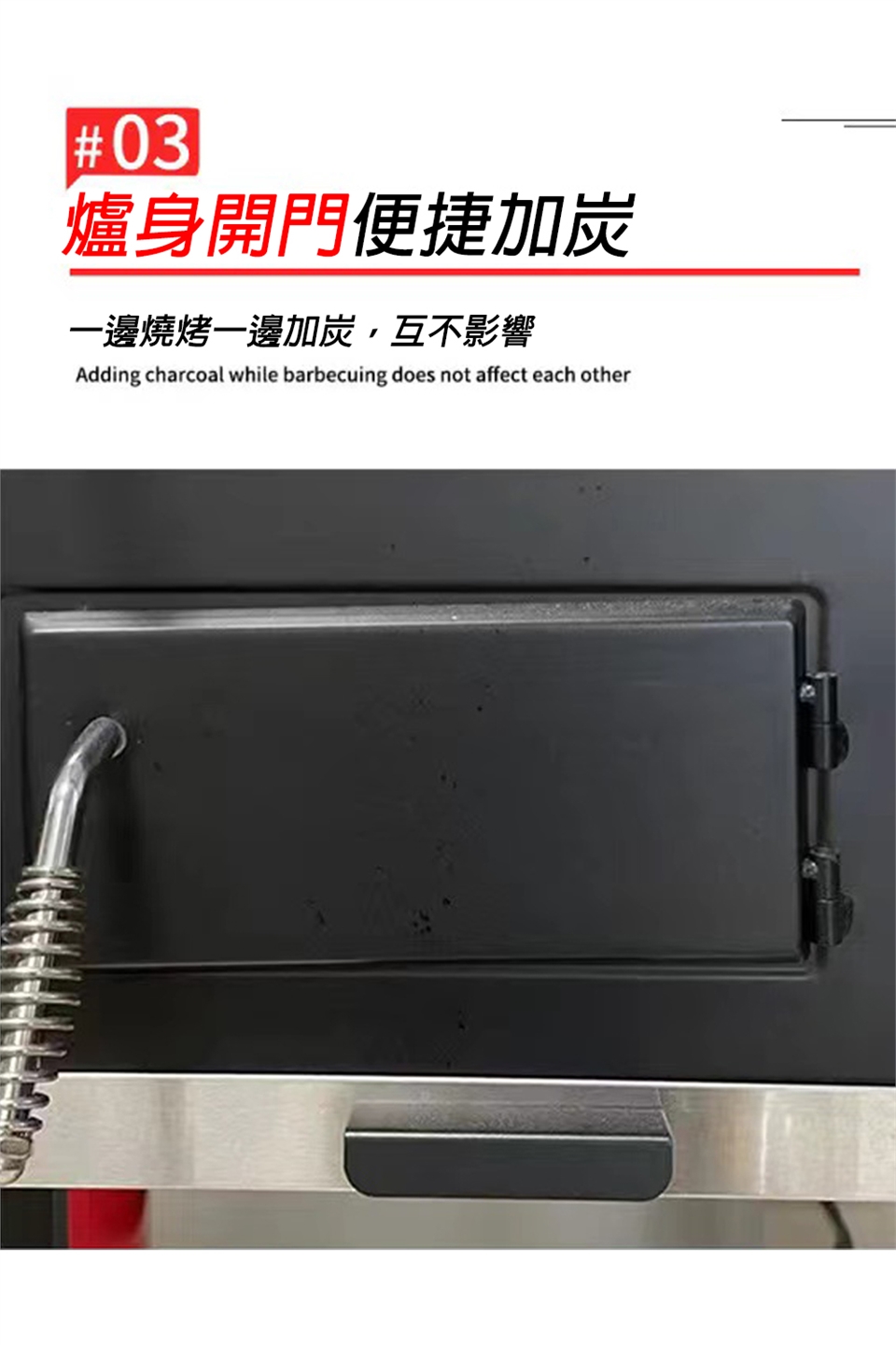 1,前門用來加碳,不必打開蓋子加碳,既減少熱量損失又方便快捷