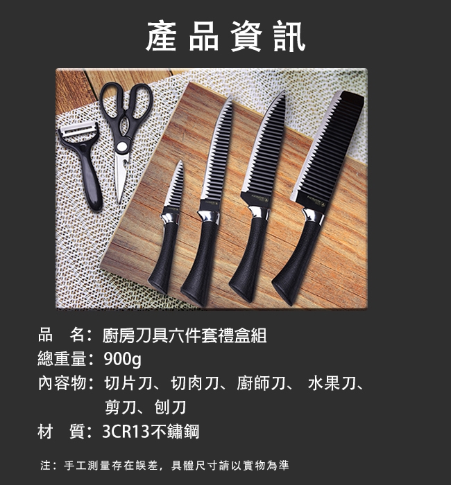 產品名稱:廚房刀具六件套禮盒組