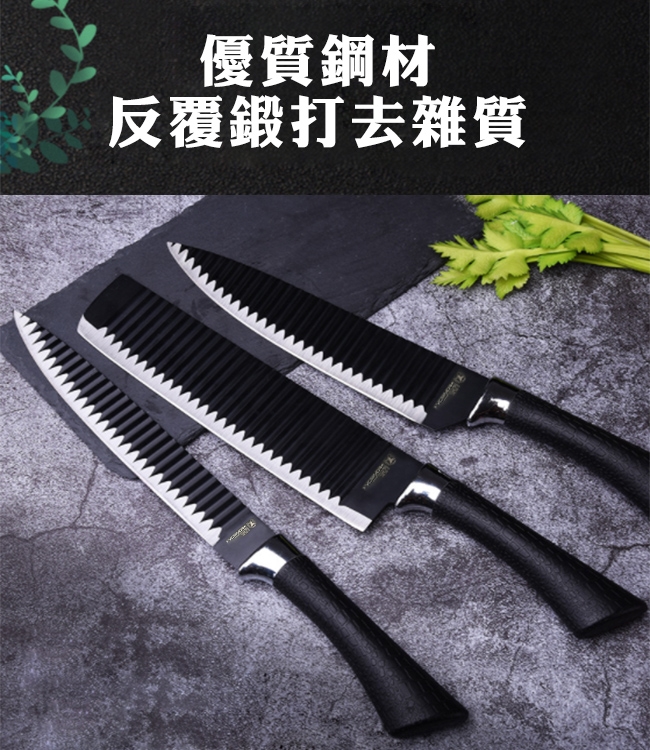 特點:空氣力學設計、物理不沾、超順手、波紋刀面平整切片、超神奇輕鬆應付食材