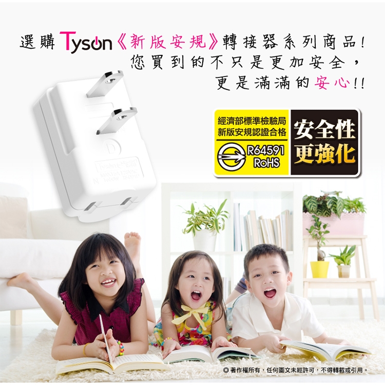 Tyson太順電業 TS-001D 下向平貼式安全轉接插頭(下配線)-2入