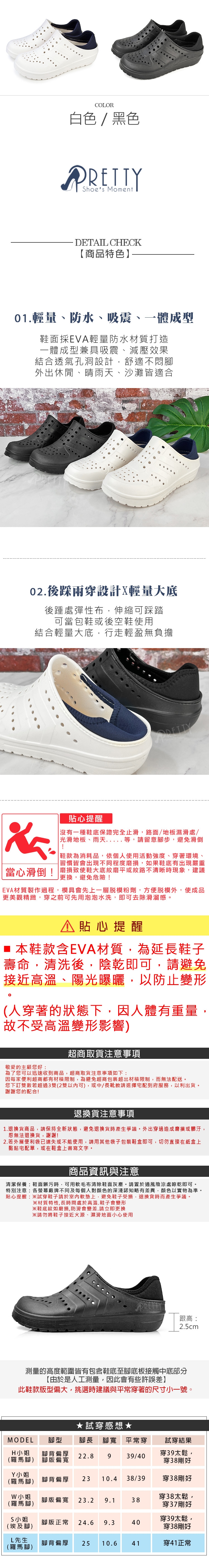 P.S. 貼心提醒,本鞋款含EVA材質,為延長鞋子壽命,清洗後,陰乾即可,請避免接近高溫、陽光曝曬,以防止變形。