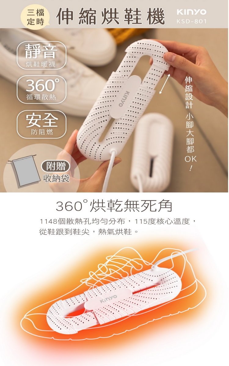 【KINYO】三檔定時伸縮烘鞋機(KSD-801)