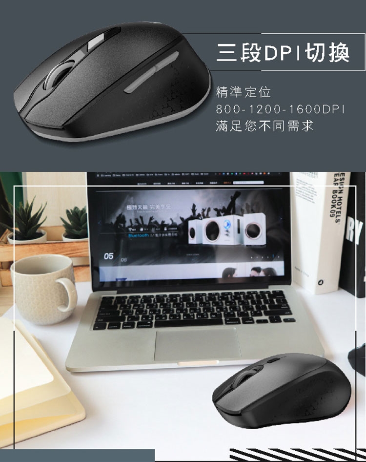 ★ 三段DPI切換,800 / 1200 / 1600 DPI,滿足您不同需求。