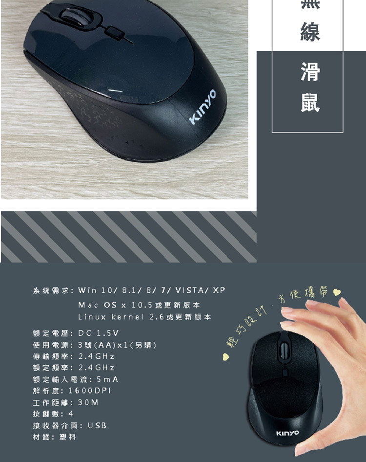 ★ 迷你型USB接收器,可收納於滑鼠底部,攜帶方便。