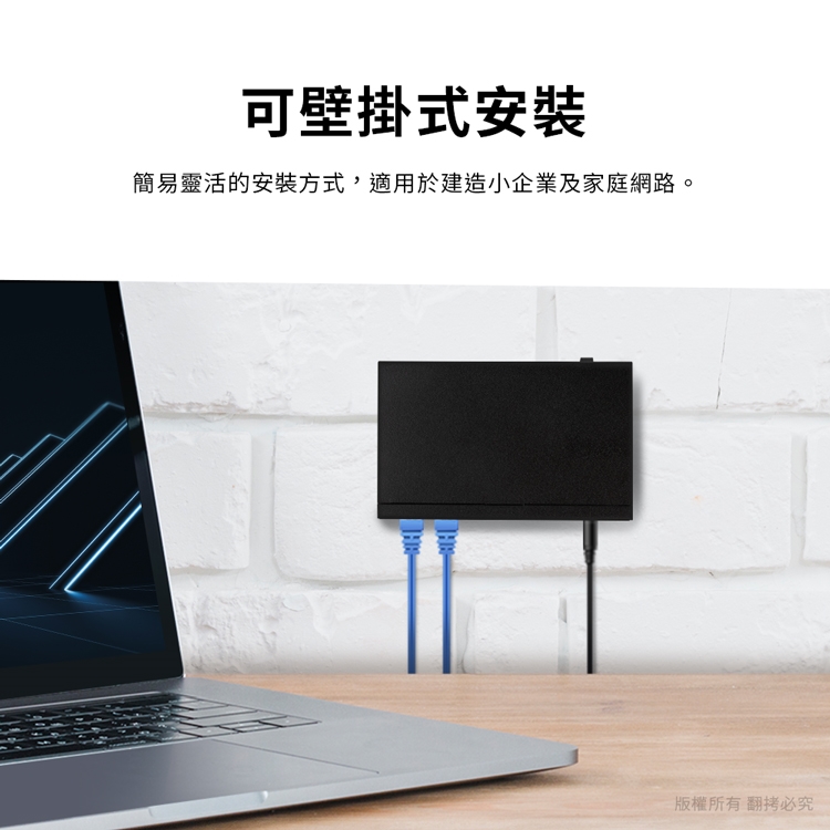 尺寸輕巧設計,節能環保,可滿足不同的網路環境需求,可選擇桌面式或壁掛式安裝,