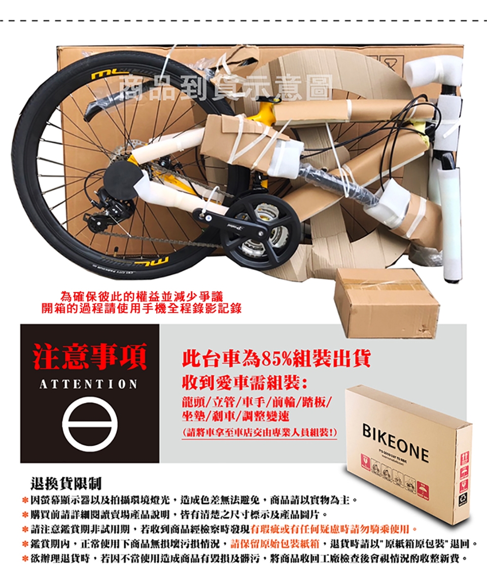 若沒有組裝單車經驗的顧客 請將車拿至車店交由專業人員組裝!