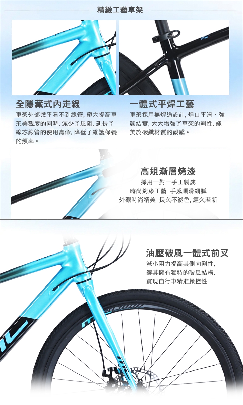 車架採用無焊道設計,烤漆採用一對一手工製成,隱藏鎖緊停車架(可伸縮)