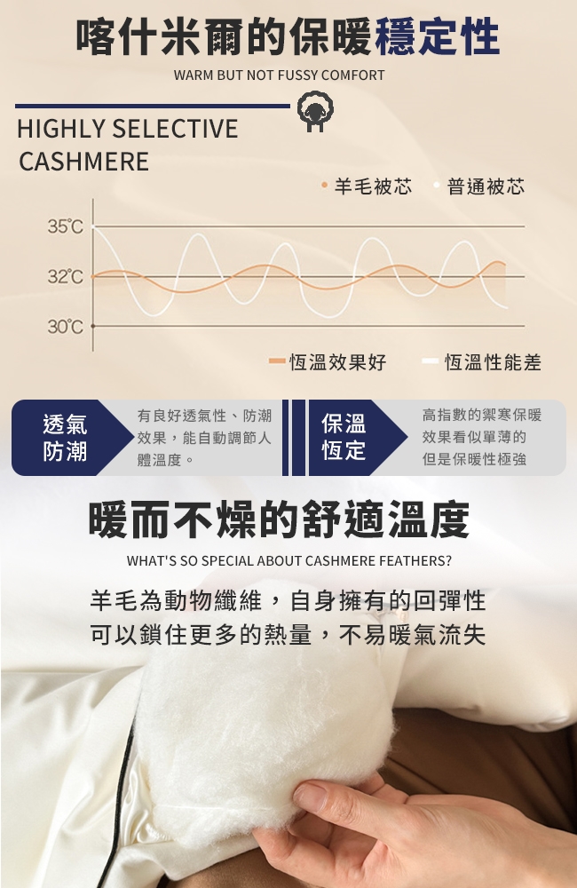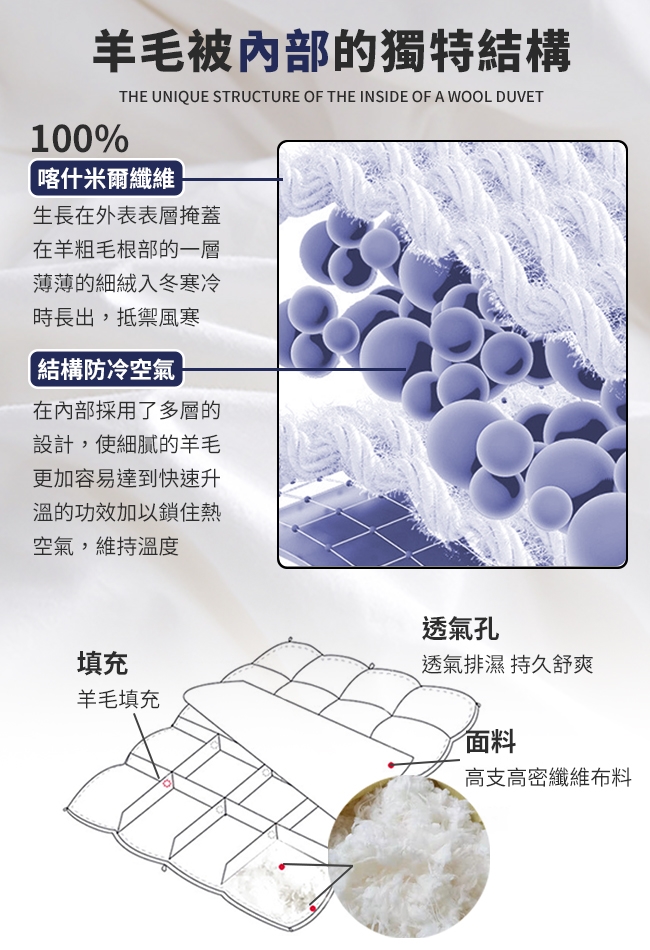 ◆整件充填,100%純小羔羊毛,輕盈貼身,給您全方位睡眠品質
