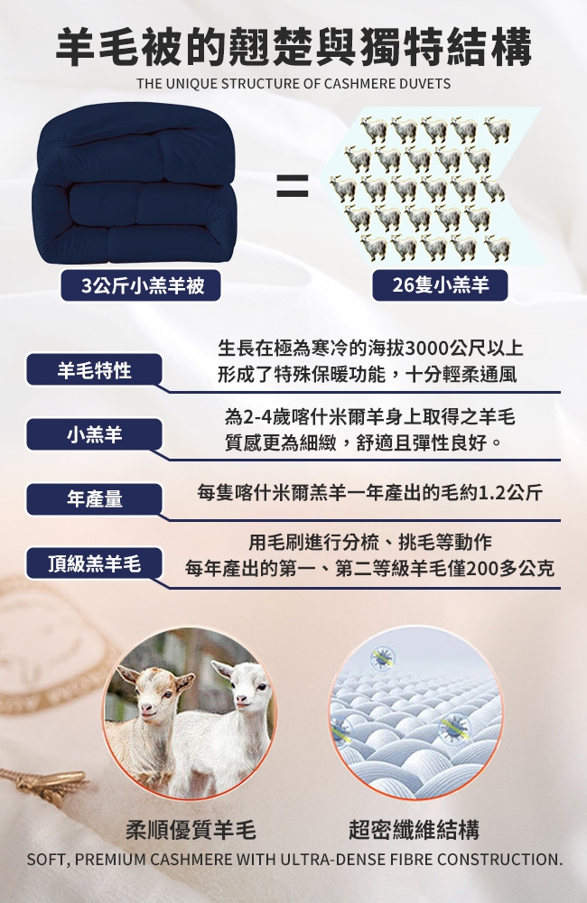產品名稱:100%頂級喀什米爾遠紅外線小羔羊毛能量被3Kg
