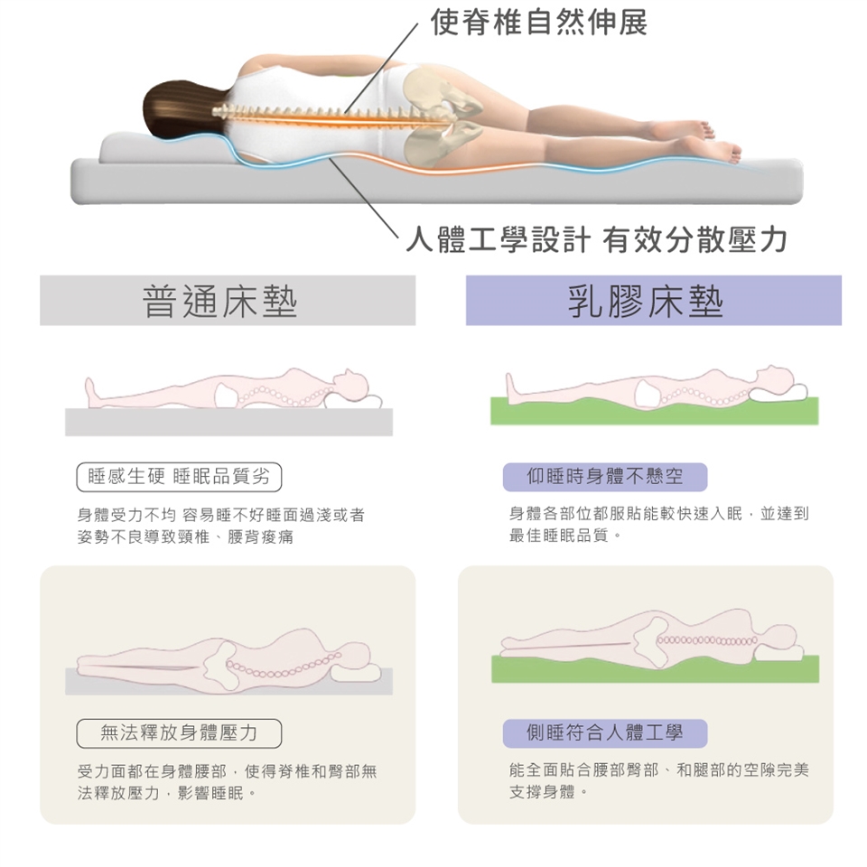 • 雲朵般Tencel 針織緹花布套搭配蜂巢式透氣乳膠,側邊3D透氣網設計 可有效排出熱氣與溼氣,宿舍床墊首選,薄型10公分輕巧好方便,提取斯里南卡優質天然乳膠原液,製造過程絕無殘留有毒物質,乳膠床墊瞬間回彈功能 高回彈不變形,具有天然的抗菌和防螨特性,能有效防止細菌和塵螨的滋生,為您打造一個健康、衛生的睡眠環境。