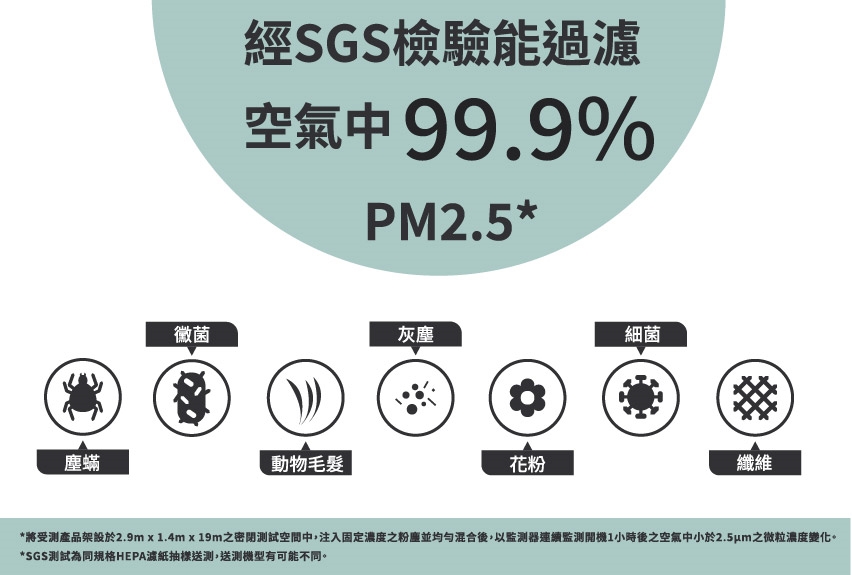 HEPA濾網有效過濾塵螨、灰塵、動物毛髮、PM2.5等空氣中微粒物