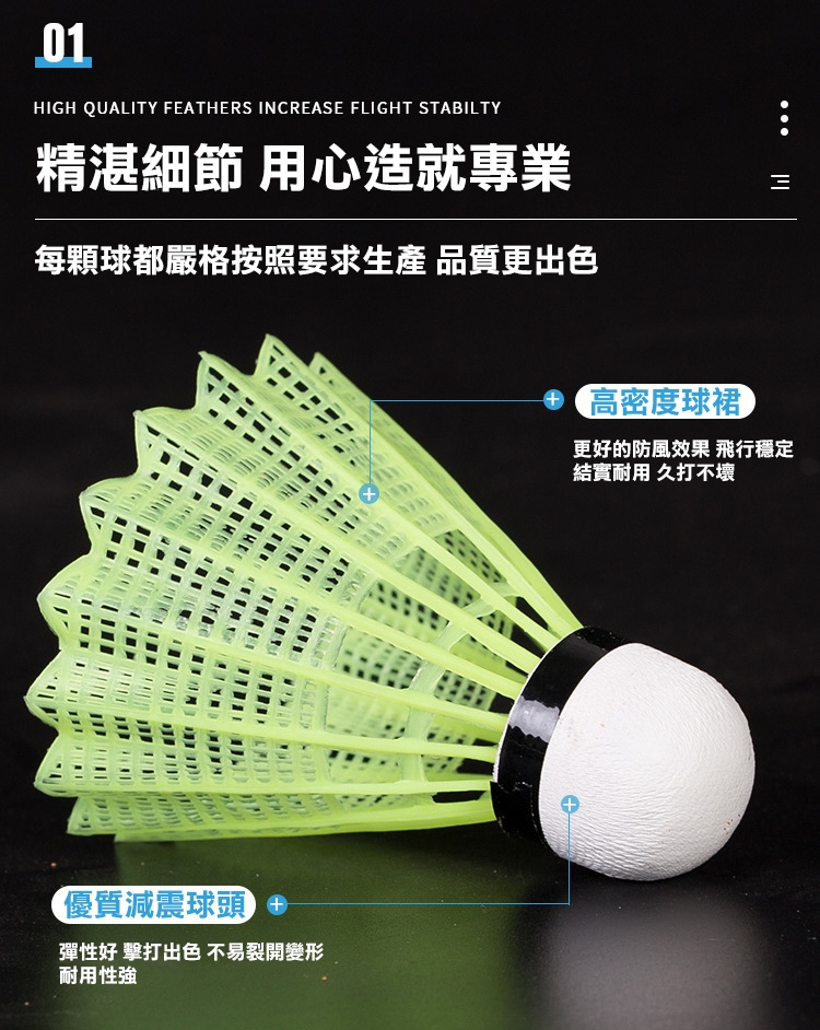 高密度球裙,更好的防風效果,飛行穩定,結實耐用,久打不壞