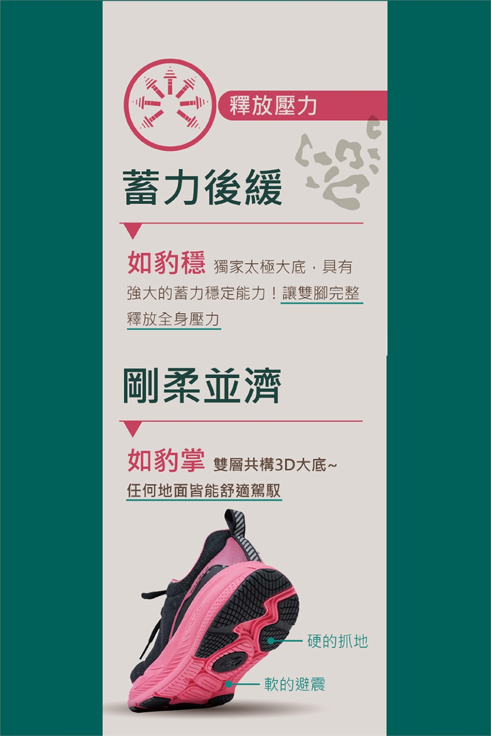 商品名稱:【我挺你健康鞋-豹豹極地(女版)UET2002GPG綠粉豹 排靜電X太極底=慢跑鞋-健走鞋