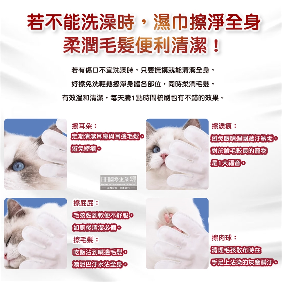 (3)戴上後即可幫寵物清潔毛髮、身體。