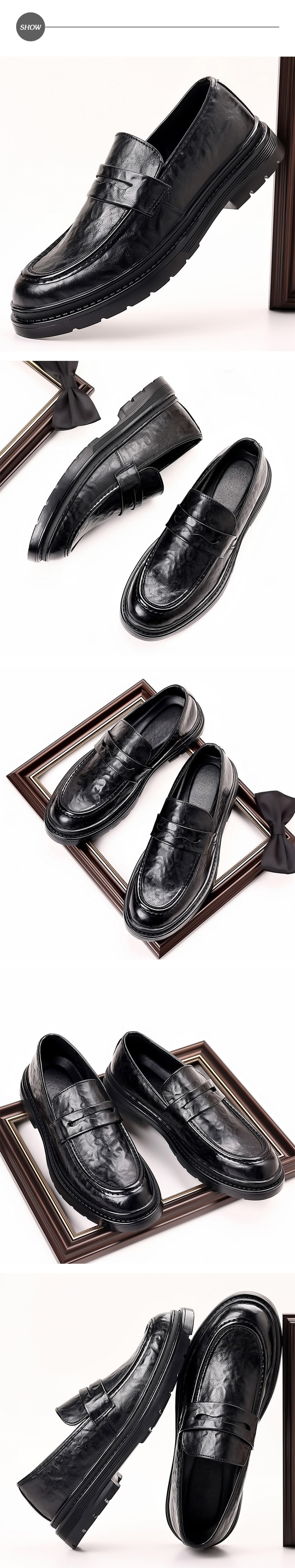 【KIRON】粗跟復古樂福鞋/復古皮紋經典粗跟商務樂福鞋 皮鞋 男鞋 黑