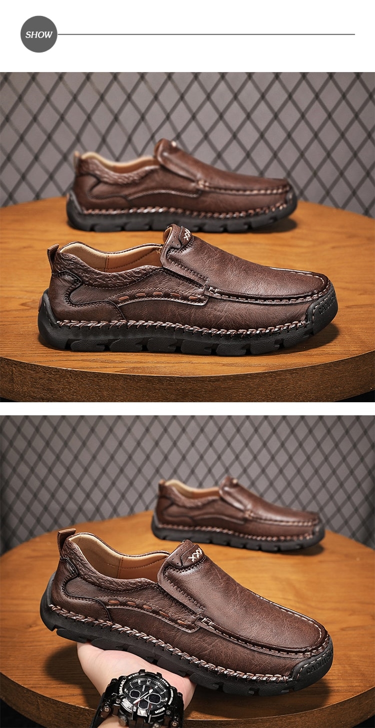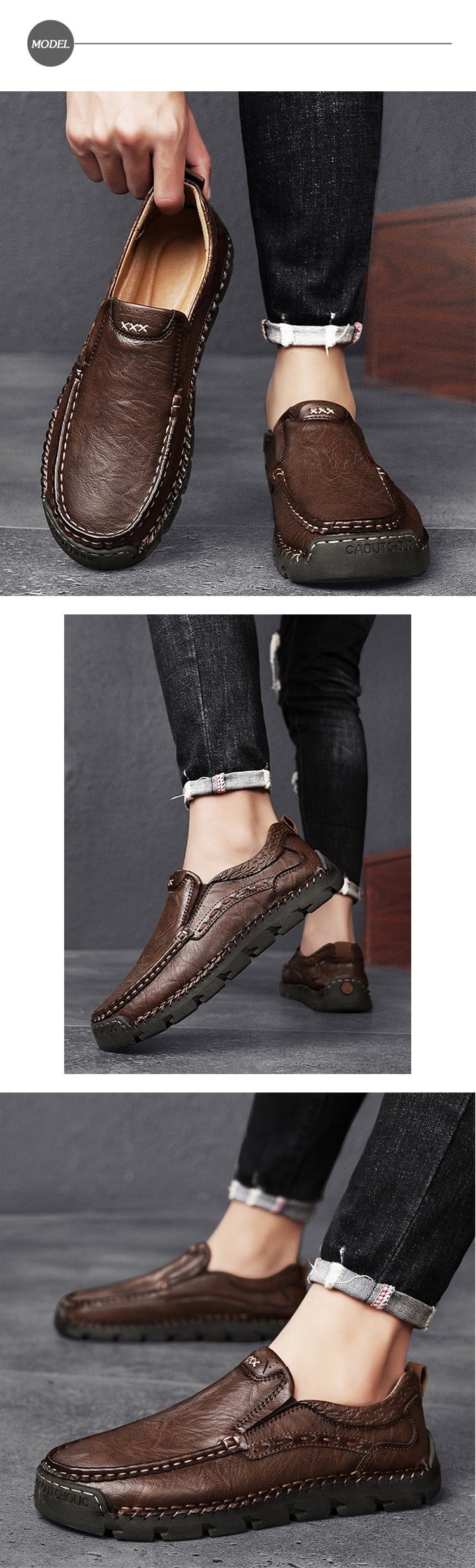 【KIRON】個性休閒樂福鞋/潮流個性手工縫線設計休閒樂福鞋 男鞋 咖